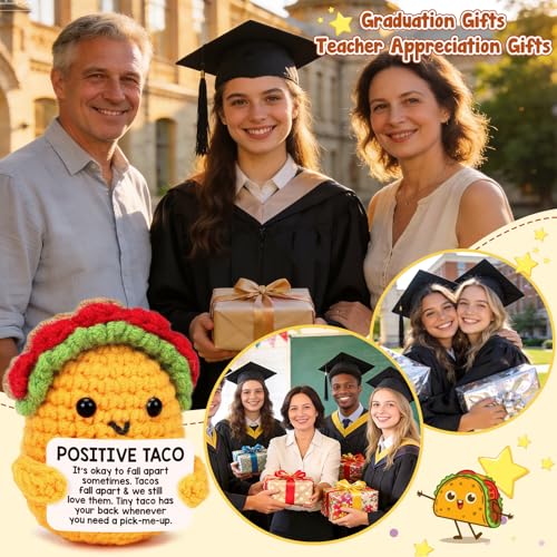 Positive Crochet Taco Birthday Gifts for Women Men Teacher Appreciation Mothers Day Graduation Gift Adult Kids Son Mom Dad Daughter Sister Friend Coworkers Self Care Emotional Inspirational Support