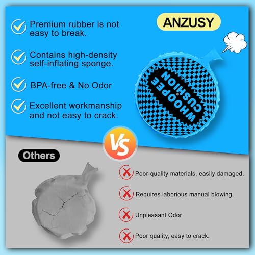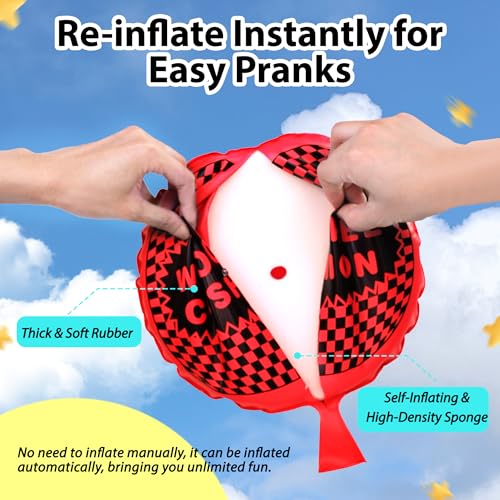 【Self-Inflating Design】Making embarrassments has never been easier! Our woopie cushions are self-inflating to reduce downtime between acts of mischief. This is because the woopy cushion contains sponge, which automatically absorbs air and expands. Note: Place it with the hole facing up