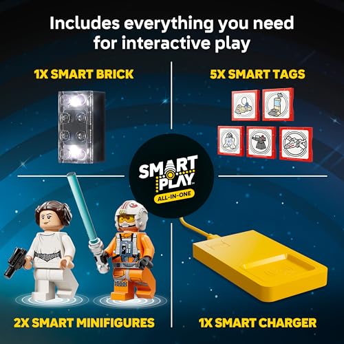2 LEGO SMART MINIFIGURES – Bring SMART Luke Skywalker and SMART Princess Leia to life with the SMART Brick for immersive play, triggering reactions to situations they experience