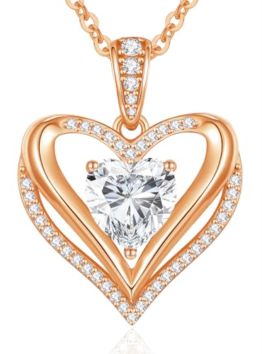 Moissanite Necklace for Women, Christmas Gifts for Wife, S925 Sterling Silver Plated with 18K Gold/Rose Gold Plated Heart Pendant 1-3 Carat Moissanite Necklaces, Anniversary Birthday Gift for Girlfriend Her Mom