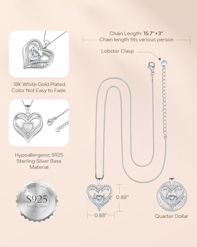 Specification: S925 Sterling Silver Necklace for Women, Wife Jewelry Rose Gold, Mom Birthday Valentines Mothers Day Gifts, Girlfriend Necklaces, Daughter Heart Jewel, Anniversary for Her