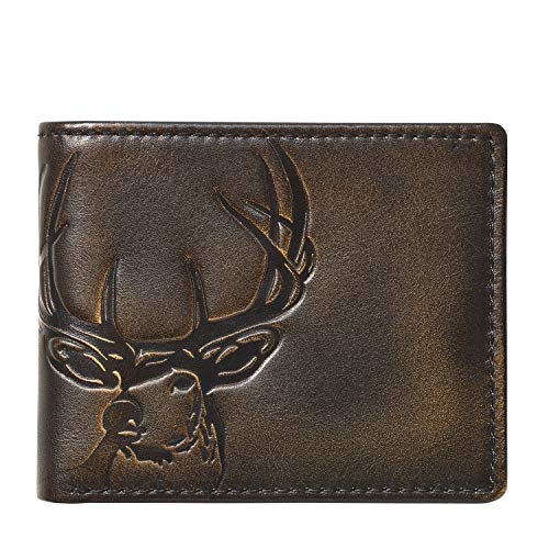 House of Jack Co. Deer Bifold Wallet for Men and Outdoorsmen with Two ID Windows, Camou Lining, Full Grain Cowhide Leather Wallet, Black