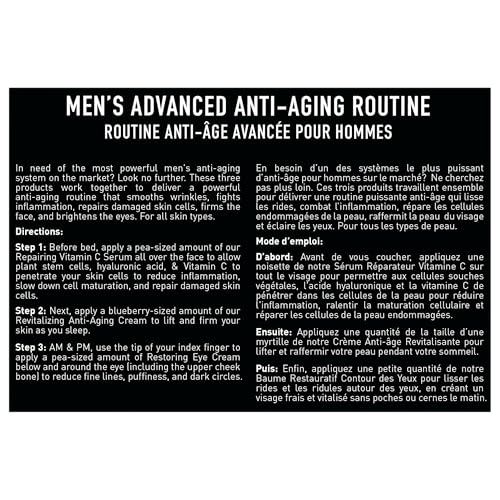 Brickell Men’s Advanced Anti-Aging Routine, Night Face Cream, Vitamin C Facial Serum and Eye Cream, Natural and Organic, Unscented, Skin Care Gift Set