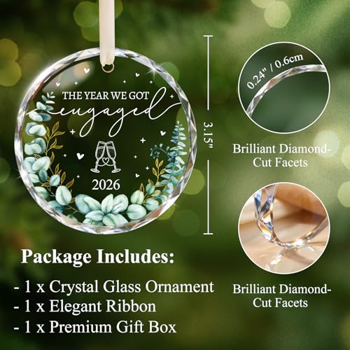 Specification: Engagement Gifts for Couples – Crystal Glass 2026 Engagement Ornament, Newly Engaged Gifts for Women, Her – Bride to Be Gift, Fiance Gifts – Engaged Christmas Party Decorations