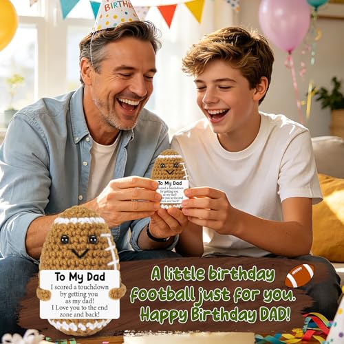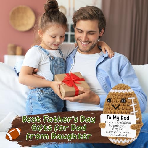 Specification: Funny Fathers Day Birthday Gifts from Daughter Son Wife, Father’s Day Positive Handmade Crochet Gift for Dad, Cute Small Gifts for Dads, I Love You Papa Gift Idea, Unique Football Doll for Step-Dads