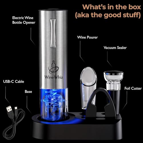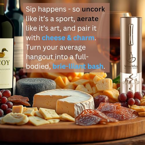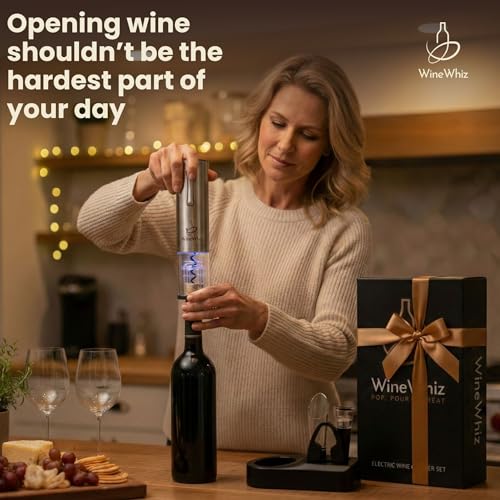 🍷 CORK EMBARRASSMENTS ARE OUT – We’ve all been there – tugging, twisting, and sweating while guests watch you wrestle a cork. Nothing kills the vibe faster. The WineWhiz Electric Wine Opener ends the struggle (and the embarrassment) with one effortless push, popping corks smoothly every time. No grunting, no broken corks, no awkward “can someone else try?” moments. Instead, you’ll look like a confident host who has it all under control. Perfect for anyone with arthritis – or anyone who just hates wrestling bottles.
