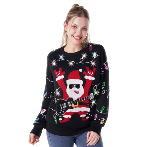 Our humorous men’s LED-lit Christmas sweater offers 3 distinct lighting modes, providing hours of continuous illumination to liven up your winter holiday gatherings. Arriving in a beautifully wrapped gift box, it’s an ideal Christmas present for loved ones. This unique Giggling Getup sweater is guaranteed to turn heads at parties, with twinkling lights that activate with a simple button press. Crafted from premium acrylic, it’s comfortable, stretchy, soft, and warm. The convenient light button pocket ensures easy access during use. Available in various sizes, it’s perfect for couples, friends, or families. For specific measurements, please refer to the product description and size chart.
