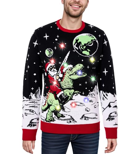 RAISEVERN LED Men Ugly Christmas Sweater Funny Light Up Xmas Party Long Sleeve Knitted Pullover