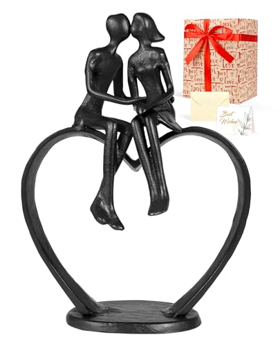 Gifts for Wife, Kissing Couple & Loving Heart Statue Cast Iron Sculpture Decor, Wedding Anniversary Birthday Gifts for Wife Women Girlfriend Her, Wedding Anniversary Couple Gifts