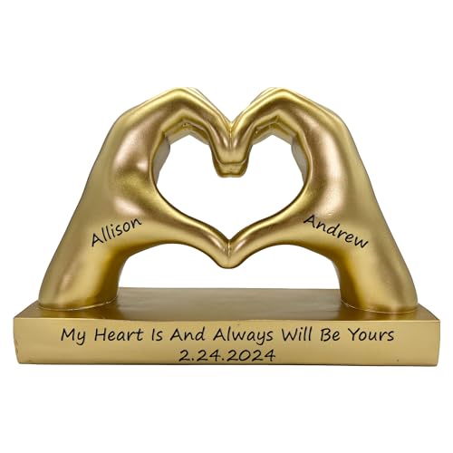 Gold Heart Shape Hand Statue Personalized for Girlfriend, Wife, Valentine’s Day Gifts for Women, Couples, Decorations, Trendy Room Decor, Custom with Names, Wedding Anniversary, Birthday