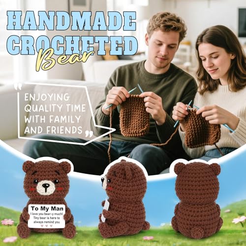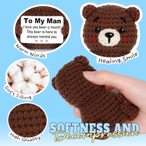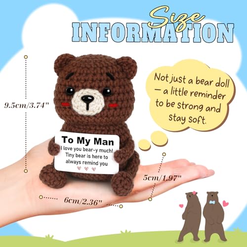 Romantic Gift for Him:This charming pocket-sized companion brings a smile wherever your boyfriend goes, delivering warmth and love! More than just a crochet, this finely hand-knitted bear comes with a special card that reads: “To My Man,I love you bear-y much! Tiny bear is here to always remind you.”A heartfelt way to convey romance and companionship to your husband