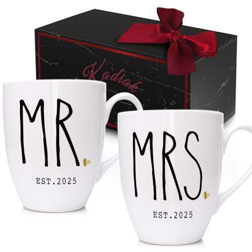 2025 Mr and Mrs Coffee Mugs Set for Anniversary and Engagement, Gifts Idea for Couples, Wedding Present for Bride and Groom, His & Her Mug Set for Parents