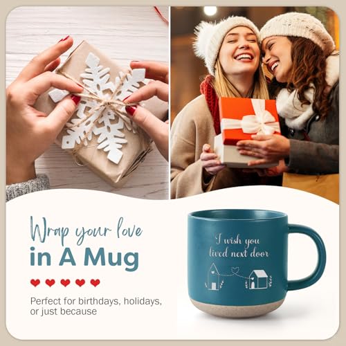 Best Friend Birthday Gift for Women – I Wish You Lived Next Door Mug, Unique Galentines Unique Day & Christmas Friendship Gift for Women, Bestie, BFF, Sister, Mom – 12.8oz Coffee & Tea Cup