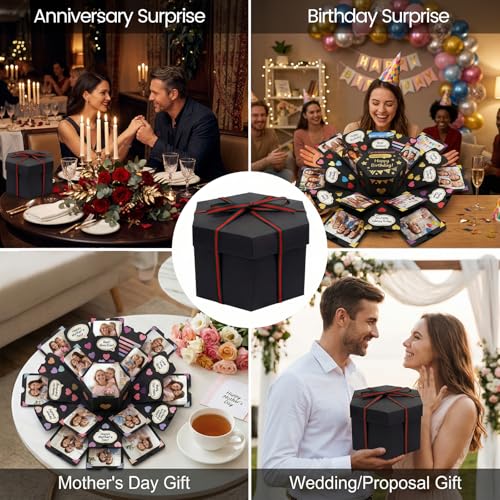 EXPLODING PHOTO ALBUM – Once opened, the exploding gift box expands with multiple layers. You can custom the space by pasting favorite pictures and writing personal notes to create a unique scrapbook.