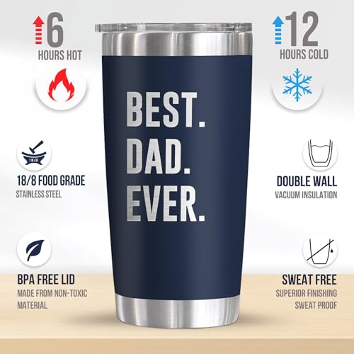 TEEZWONDER Dad Gifts from Daughter Son – Navy 20 oz Stainless Steel Insulated Coffee Tumbler with Lid – Father Day Gifts for Men Him Husband Who Wants Nothing, Mens Dad Birthday Gift Ideas