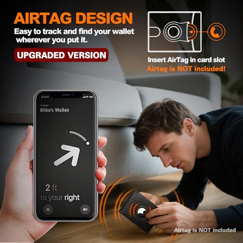 Anti-loss Design: This ultra-thin wallet for men has a built-in AirTag slot, perfectly compatible with AirTag to prevent loss. Open Apple’s “Find My” app to track the AirTag/wallet’s last location. Wallet with AirTag holder (AirTag not included).