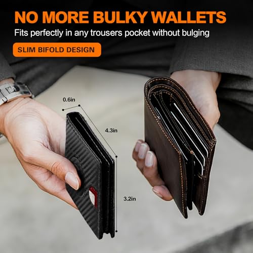 Specification: Wallet for Men Slim RFID Blocking Bifold Carbon Fiber,Minimalist Small Compact Front Pocket Credit Card Holder,Thin Mens Leather Wallets Smart Security With 2 ID Windows 1 Cash,Birthday Gifts for Men