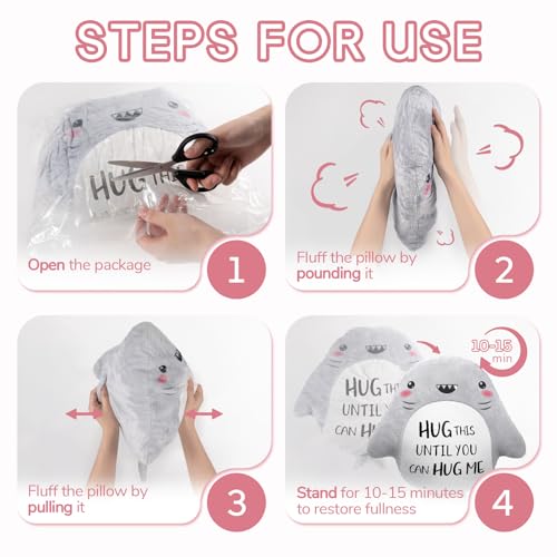 【Vacuum-Packed, Considerate Gifts】- Each pillow is carefully packaged in a gift box before shipping. Our pillows are carefully vacuum-packed, so it will be a little wrinkled when you first take it out. With a gentle pulling and let it sit for 10-15 minutes, the shark pillow will regain its fluffiness and cute appearance. To make it puffier, upon opening, you can use the cool wind of the hair dryer onto the pillow, and gently pat the pillow to mold it