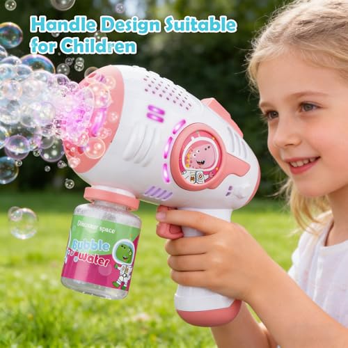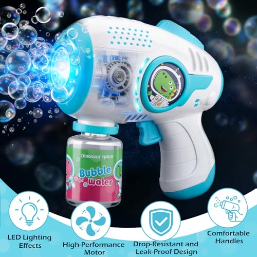 MAGICAL LIGHT-UP BUBBLE GUN: Features a built-in LED light that illuminates each bubble, creating a captivating rainbow display. This bubble gun for kids 4-8 transforms any playtime into a sparkling spectacle, perfect for evening adventures or festive celebrations