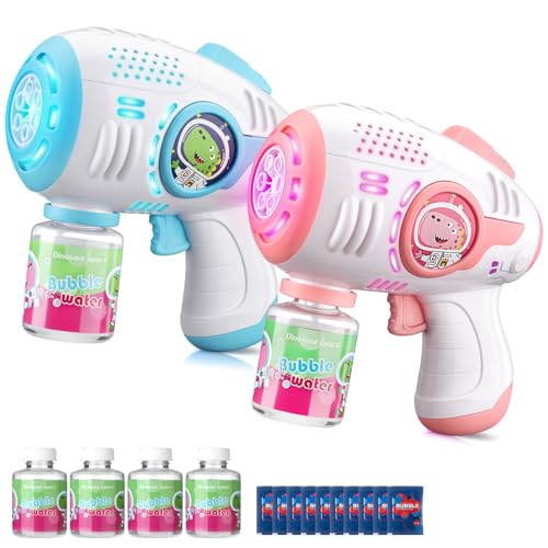 Bubble Guns for Kids 4-8, 2 Pack Automatic Bubble Blaster with LED Light & 14 Bubble Solution, Bubble Gun for Toddlers Outdoor Summer Toys