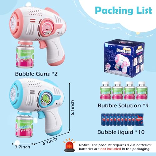 Specification: Bubble Guns for Kids 4-8, 2 Pack Automatic Bubble Blaster with LED Light & 14 Bubble Solution, Bubble Gun for Toddlers Outdoor Summer Toys