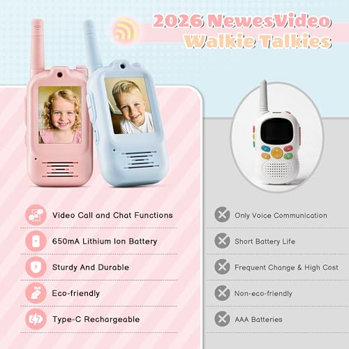 Specification: Video Walkie Talkies for Kids, 2.0″ Screen Toys with Camera, 5 Voice Changer Modes, Long Range Rechargeable Video Call Toys for 3-12 Year Old Boys Girls Birthday (Blue/Pink)