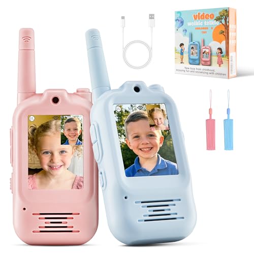 Video Walkie Talkies for Kids, 2.0″ Screen Toys with Camera, 5 Voice Changer Modes, Long Range Rechargeable Video Call Toys for 3-12 Year Old Boys Girls Birthday (Blue/Pink)