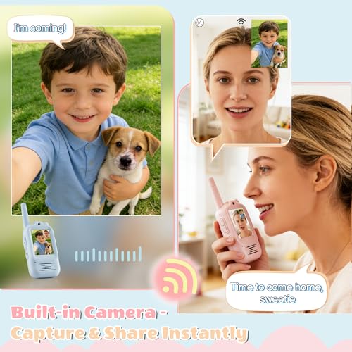 [Take & Share Photos] Instantly Built-in camera lets kids capture fun moments and share photos instantly with friends. This toddler walkie talkies adds a visual storytelling element to outdoor games for kids like hide-and-seek, camping, or backyard adventures