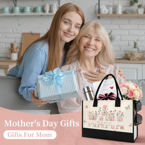 Mothers Day Gifts for Mom from Son Daughter- Large Canvas Tote Bag for Women New Mom Gifts, Floral Print Beach Bag Mama Gift for Mother’s Day Birthday