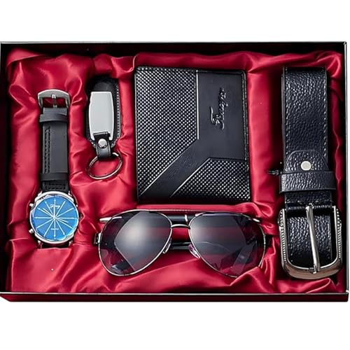 6-Piece Men’S Accessory Fashion Set (Belt, Wallet, Watch, Glasses, Keychain, Ballpoint Pen) Men’S Gift Set