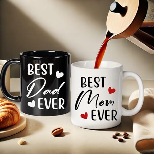 Comfortable Ceramic Mugs: Made from premium ceramic with smooth finishes and comfy C-shaped handles; easy to wash and care for, the best mom and dad ever mug set is designed for daily use; mom and dad gifts providing reliable comfort