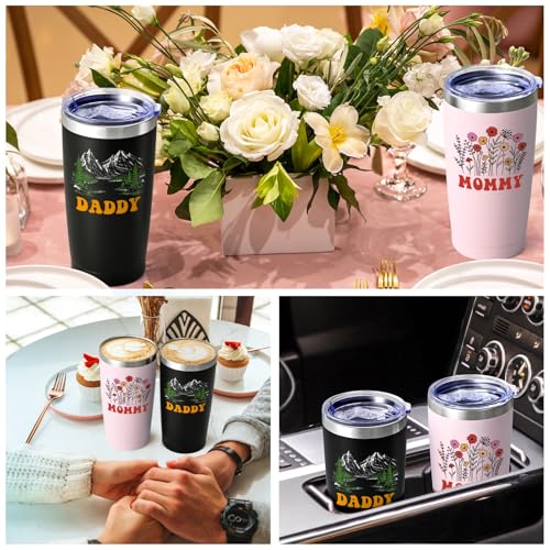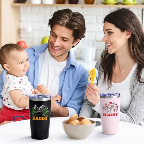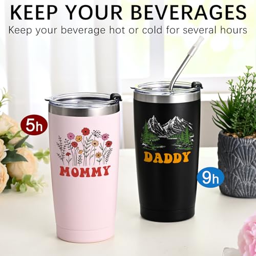 SUITABLE FOR MANY OCCASIONS: This 20 OZ dad and mom travel tumbler set is ideal for champagne, juices, cocktails, wine, coffee, soda, whiskey and more. Suitable for traveling, hiking, boating, fishing, camping, BBQ and daily use. Whether you are indoors or outdoors, this gifts for new parents ideas travel tumbler will satisfy you.