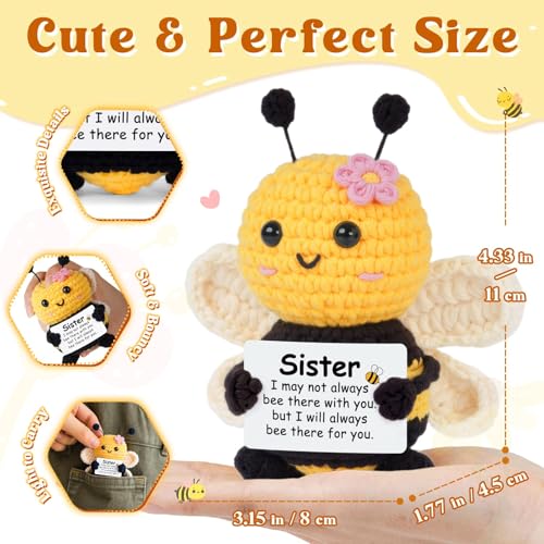 Specification: Sister Birthday Gifts, Mothers Day Sister Gifts from Sisters Brother, My Forever Soul Sisters Birthday Valentines, Mini Crochet Bee Affirmation Support Presents, Cute Handmade Knitted Decor