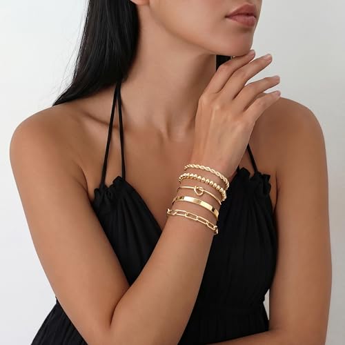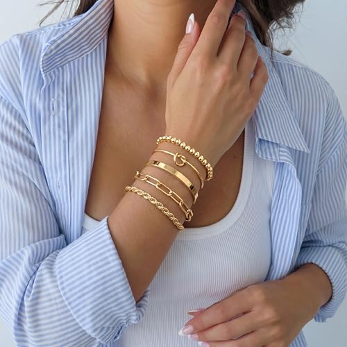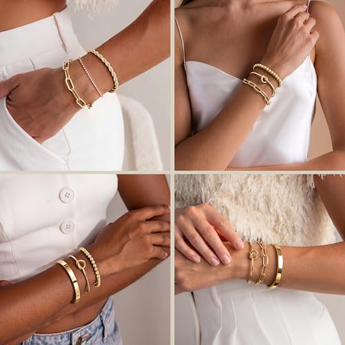 Specification: Gokeey Gold Bracelets Set for Women Non Tarnish, Waterproof 14K Gold Plated Sterling Silver Chunky Cuff Bracelet Stackable Gold Bangles Bracelet for Women Trendy Fashion Accessories Tie Knot Cuban Rope Paperclip Beaded Bracelet Stack Jewelry Mothers Day Gifts for Mom Birthday