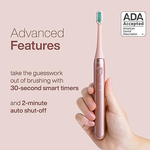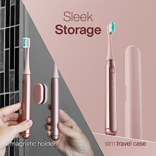 Aquasonic Icon ADA-Accepted Rechargeable Toothbrush | Magnetic Holder & Slim Travel Case | 2 Brushing Modes & Smart Timers | Gentle Micro-Vibrations (Blush)